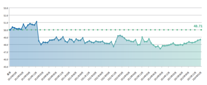 2026年2月,运营景气量指数为48.71点,较1月上升0.19点,接连三个月坚持上升态势。新年期间居民消费需求会集开释,商场出现活跃改变,增加动能增强。国家统计局数据显现,1-2月份,社会消费品零售总额同比增加2.8%,增速比上年12月份加速1.9个百分点,比上年四季度加速1.1个百分点。小微企业运营生机稳步改进,商场预期继续向好。