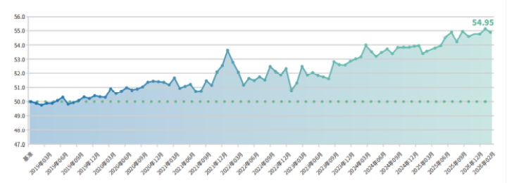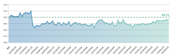 2026年2月,普惠金融-景气指数达49.72点,较1月上升0.12点。普惠小微借款增速稳健,借款利率继续下行,金融赋能实体经济力度继续加大。企业生机逐渐修正,商场预期继续改进,小微企业未来的开展耐性进一步增强。